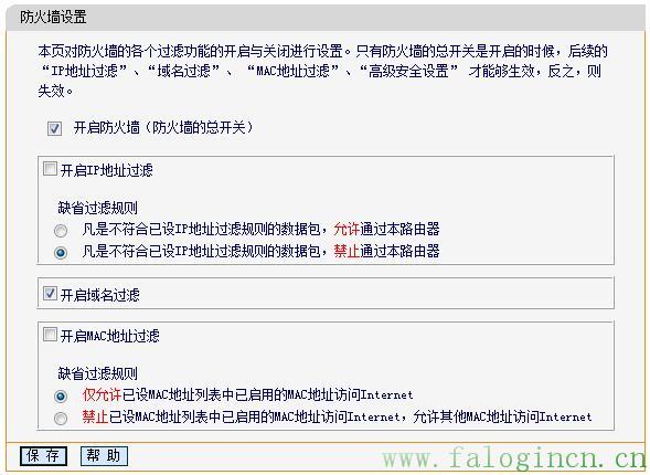 開啟域名過濾功能時,必須要開啟防火墻總開關(設置過程中若有不明確處,可點擊當前頁面的“幫助”按鈕查看幫助信息):