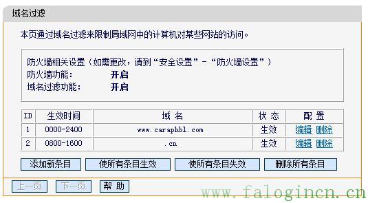 1.檢查路由器防火墻總開關以及域名過濾是否開啟,域名過濾中所設置條目是否生效
