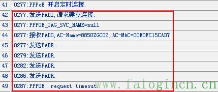日志中顯示路由器發出的PPPOE撥號請求沒有回應,這種情況的可能原因有: