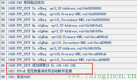 出現圖4的日志時也只需要設置路由器自動撥號,等待一段時間即可自動撥號成功。