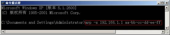 要刪除本地計算機上的ARP條目可以使用命令arp –d。要綁定某臺主機的IP與MAC地址可以使用命令arp –s 192.168.1.1 aa-bb-cc-dd-ee-ff,這樣這個條目就變成靜態ARP條目永遠不會失效,如下圖所示: